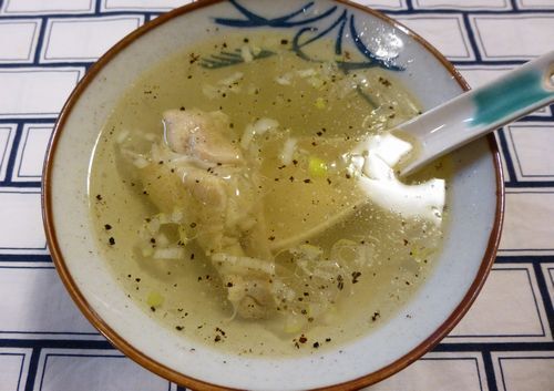 11月16日(金)夜〜 金曜夜、目黒とんきでとんかつを食って、 帰ってきた。 帰る道々、なにか汁気、、、 スープのようなものが飲みたいと、思い立った。 酔っ払っていた、からであろう。 それで、この前もやったが、鶏ガラででもスープを 取ろうかと思い、ハ…